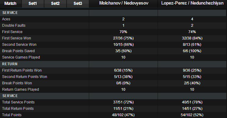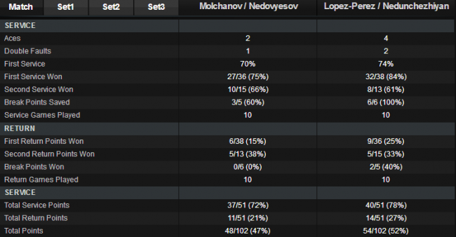 Денис Молчанов (Украина, 4) / Александр Недовесов (Казахстан, 4) — Энрике Лопес-Перес (Испания) / Джейван Недунчезиян (Индия) 4-6 4-6