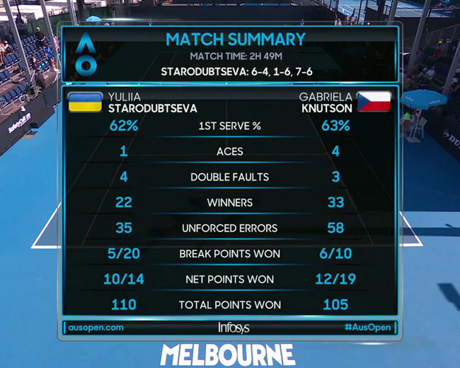 Юлия Стародубцева (Украина) — Габриэла Кнутсон (Чехия) 6:4, 1:6, 7:6(4)