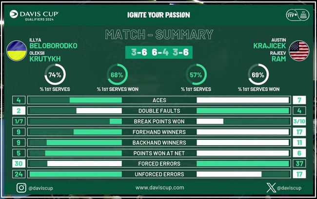 Илья Белобородько/Алексей Крутых — Остин Краичек/Раджив Рам 3:6, 6:4, 3:6