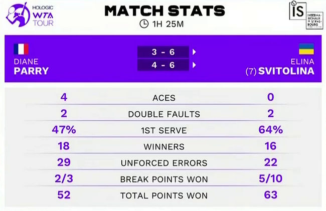 Элина Свитолина (Украина, 7) — Диан Парри (Франция) 6:3, 6:4