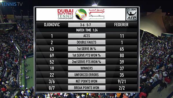 Матч продолжался в общей сложности 1 час 24 минуты. После этого поединка счёт по личным встречам между теннисистами стал 20:17 в пользу Роджера.