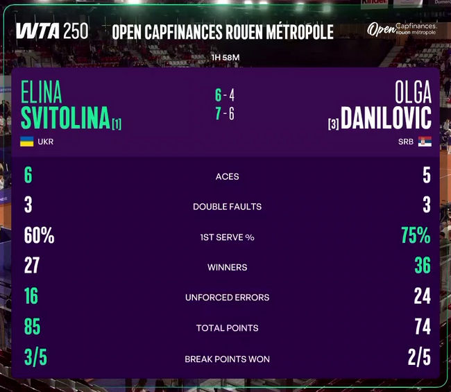 Элина Свитолина (Украина, 1) — Ольга Данилович (Сербия, 3) 6:4, 7:6(8)