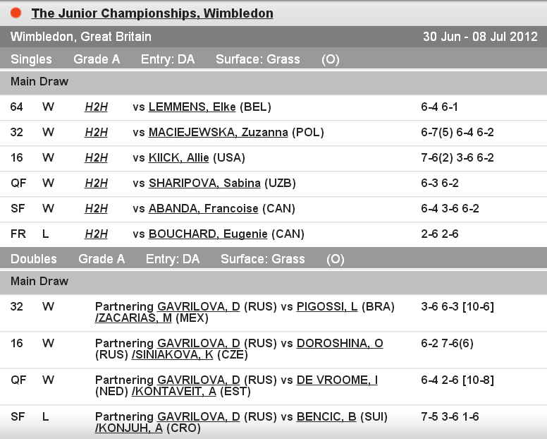 • 7 июля 2012 года: Элина Свитолина — финалистка юниорского Уимблдона.