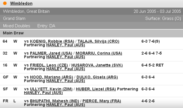 • 3 июля 2005 года: Татьяна Перебийнис — финалистка Уимблдонского турнира в миксте.