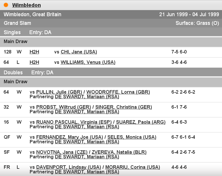 • 4 июля 1999 года: Елена Татаркова — финалистка Уимблдона в парном разряде.
