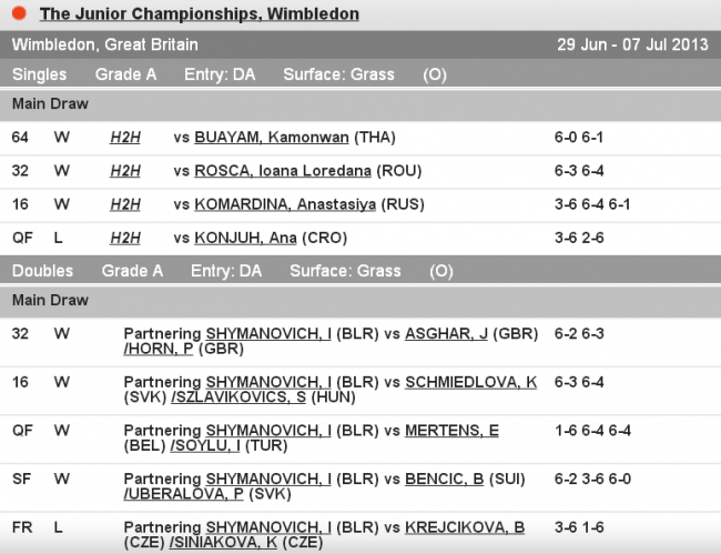 • 7 июля 2013 года: Ангелина Калинина — финалистка юниорского Уимблдона в паре.
