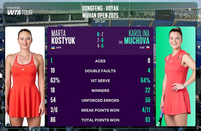 Марта Костюк (Украина) — Каролина Мухова (Чехия, 12) 6:2, 2:6, 4:6