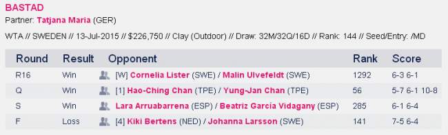 Ольга Савчук вместе Татьяной Марией успешно преодолели три раунда соревнований, в том числе обыграли первых сеяных сестер Чань из Тайваня (5-7 6-1 10-8). В финале украино-немецкий уступил четвертой паре турнира Кики Бертенс (Нидерланды) / Юханна Ларссон (Швеция).