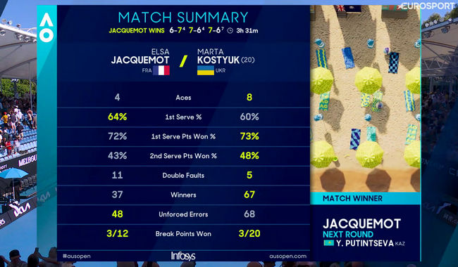 Поединок продолжался 3,5 часа и стал первым в истории Открытого чемпионата Австралии, в женском одиночном разряде, где состоялось три тай-брейка.