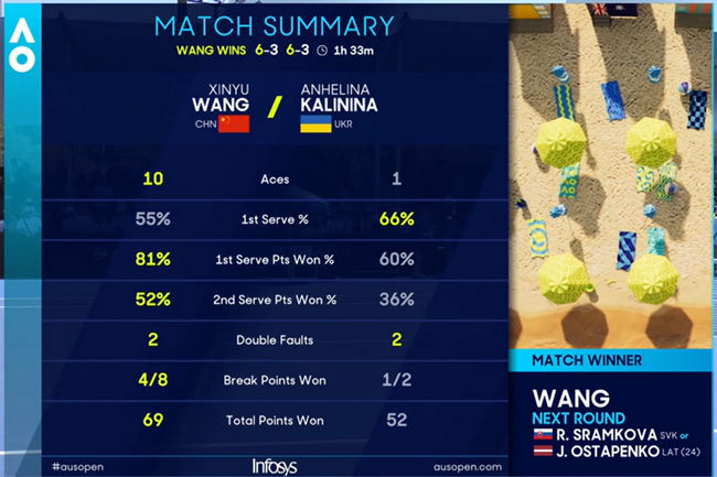 За свое выступление на Australian Open Ангелина Калинина заработала 150 тысяч австралийских долларов призовых и 50 рейтинговых очков.