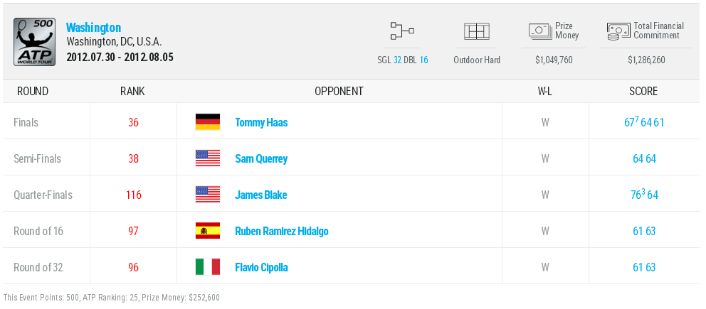 23-летний украинский теннисист выигрывает свой первый титул серии ATP World Tour 500. Долгополов, на тот момент 25-я ракетка мира, не проиграл ни одного сета до финала. В четвертьфинале украинец был сильнее Джеймса Блейка (США), в полуфинале обыграл Сэма Куэрри (США), а в решающем матче одолел экс-вторую ракетку мира Томми Хааса (Германия).