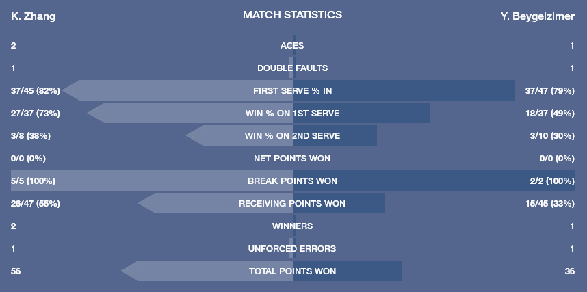 Юлия Бейгельзимер (Украина) — [5] Чжан Кай-Лин (Китай) 2-6 3-6