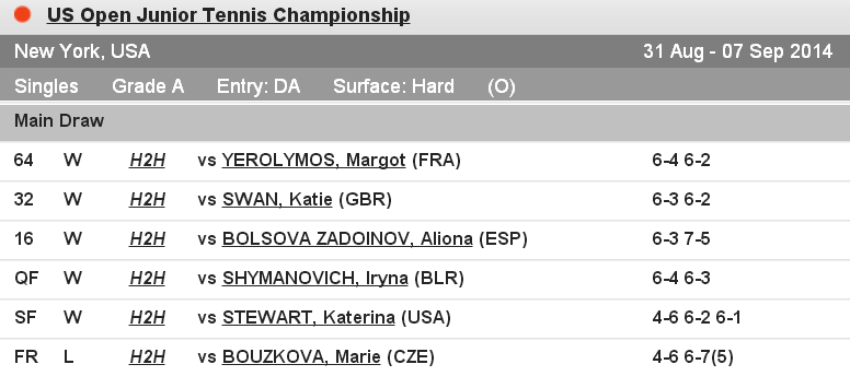 17-летняя украинка остановилась в шаге от титула, уступив Марии Боусковой из Чехии 4-6 6-7 (5). Во втором сете Калинина смогла отыграть два матчбола по ходу партии, но в итоге проиграла на тайбрейке.