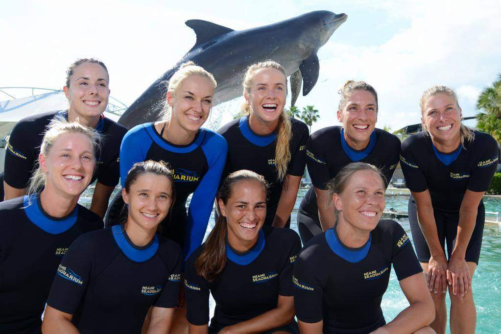 Первая ракетка Украины Элина Свитолина приняла участие в традиционной для турнира в Майями фото-сессии в дельфинарии.