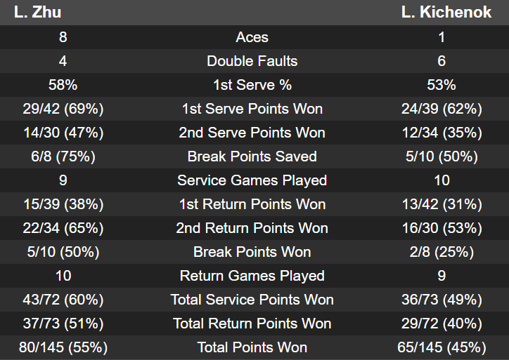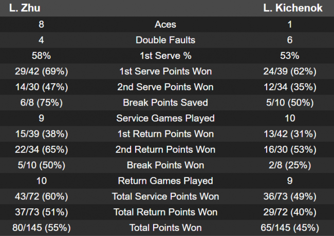 Людмила Киченок (Украина) — Чжу Линь (Китай) 4-6 3-6