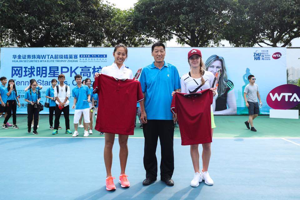 .@ElinaSvitolina and @ZhangShuai121 enjoy a hit with University students at @WTAEliteTrophy! pic.twitter.com/LPnTWuYJ9g