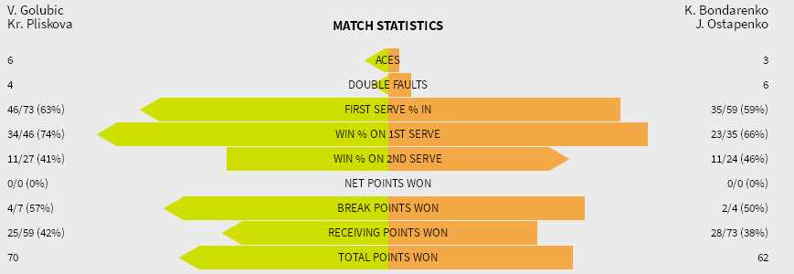 Катерина Бондаренко (Украина) / Елена Остапенко (Латвия) — Кристина Плишкова (Чехия) / Виктория Голубич (Швейцария) 3-6 5-7