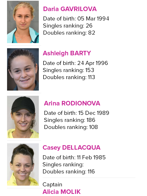 На матч против украинских теннисисток во Второй Мировой группе Кубка Федерации сборная Австралии отправится в таком составе: