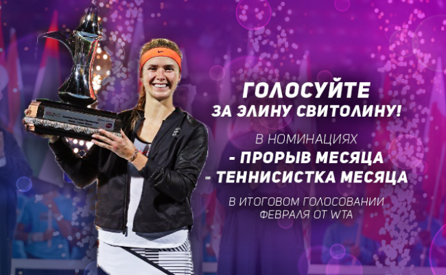 На победу в двух из трёх представленных номинаций претендует первая ракетка Украины Элина Свитолина. Голосование, напомним, проводится среди болельщиков на официальном сайте WTA.