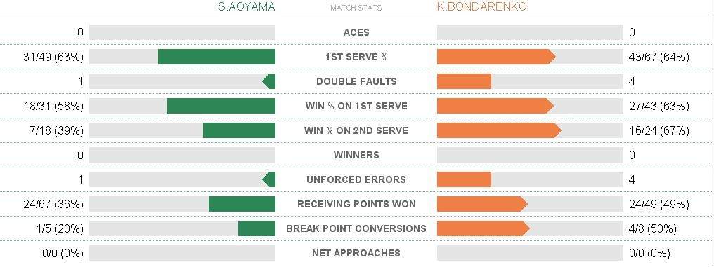 К. Бондаренко (Украина)— С. Аояма (Япония) 6:1, 6:4