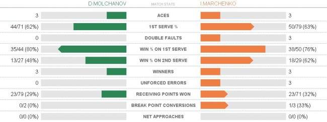 Илья Марченко (21, Украина)— Денис Молчанов (Украина) 7:6(7), 6:3