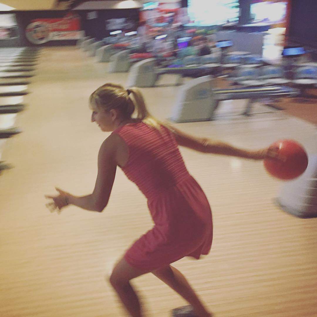 Тимеа Бачински совершенствует свои навыки в боулинге.
