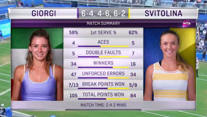 [2] Элина Свитолина (Украина) — [Q] Камила Джорджи (Италия) 4-6 6-4 2-6