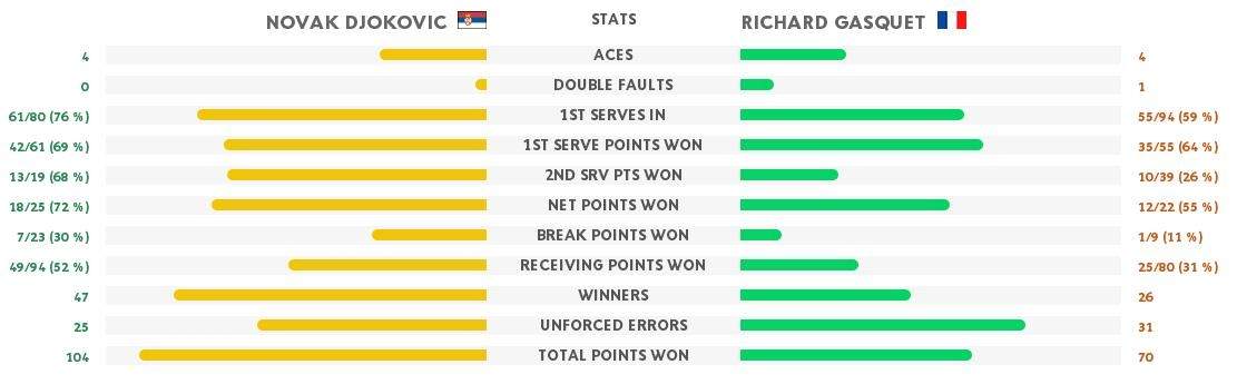 Н. Джокович (1, Сербия) — Р. Гаске (20, Франция) 6:1, 6:2, 6:3