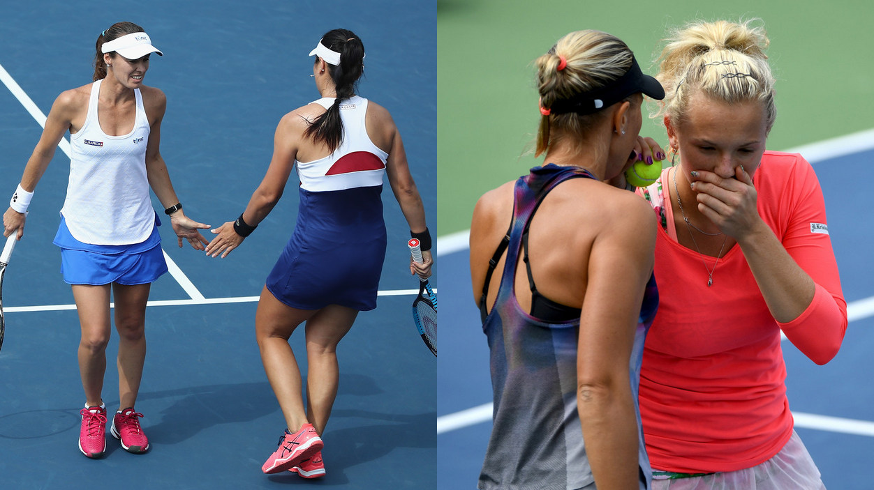 Люси Градецка и Катержина Синякова также не проиграли ни одного сета на пути в финал US Open и проведут первый совместный финал на Шлемах. Градецка в третий раз сыграет в решающем матче в Нью-Йорке (2012 — финал; 2013 — титул) и в шестой на «мэйджорах», а для Синяковой воскресный финал станет первым на турнирах Большого Шлема.