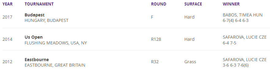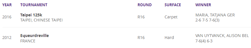 Теннисистки встречались дважды, и оба матча прошли в помещении: в прошлом сезоне на турнире WTA 125k на Тайване, а четырьмя годами ранее на 25-тысячнике во Франции.