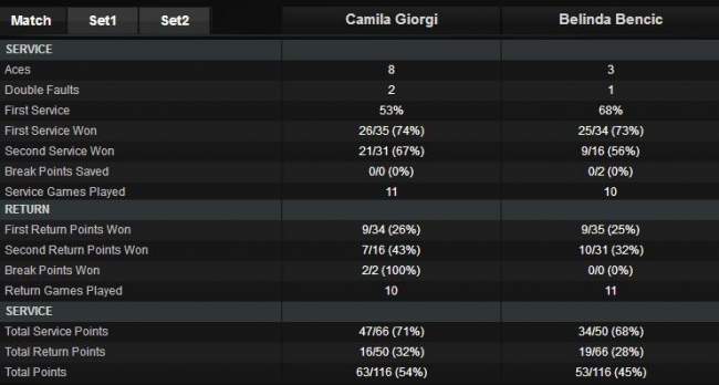К. Джорджи (5, Италия) — Б. Бенчич (4, Швейцария) 7:5, 6:3