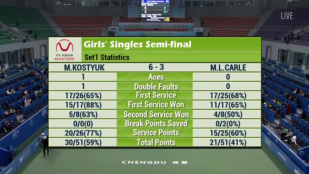 Марта Костюк (Украина) — Мария Лурдес Карле (Аргентина) 6:3, 7:5