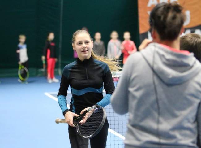 Теннисистки провели с детьми разминку, а затем предоставили каждому возможность сыграть несколько розыгрышей против них. Самые удачливые юные спортсмены не ушли с корта без подарка, а каждый желающий получил фото и автографы на память.