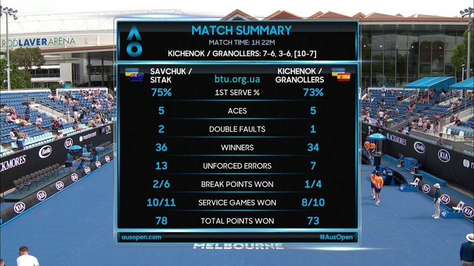 Надежда Киченок (Украина) / Марсель Гранольерс (Испания) — [A] Ольга Савчук (Украина) / Артём Ситак (Новая Зеландия) 7:6(6), 3:6, 10-7