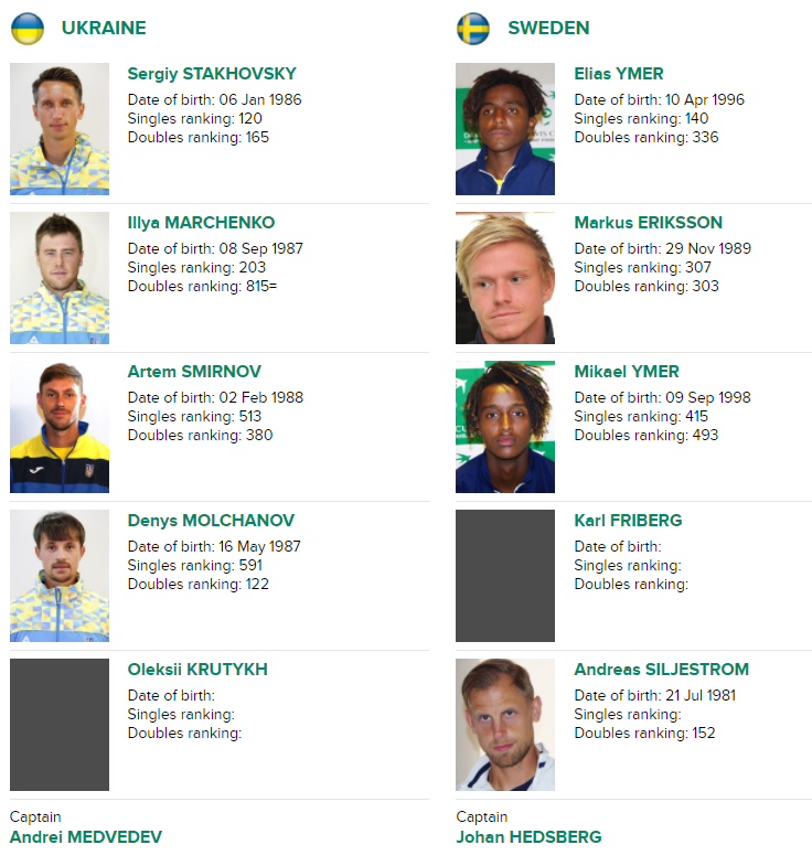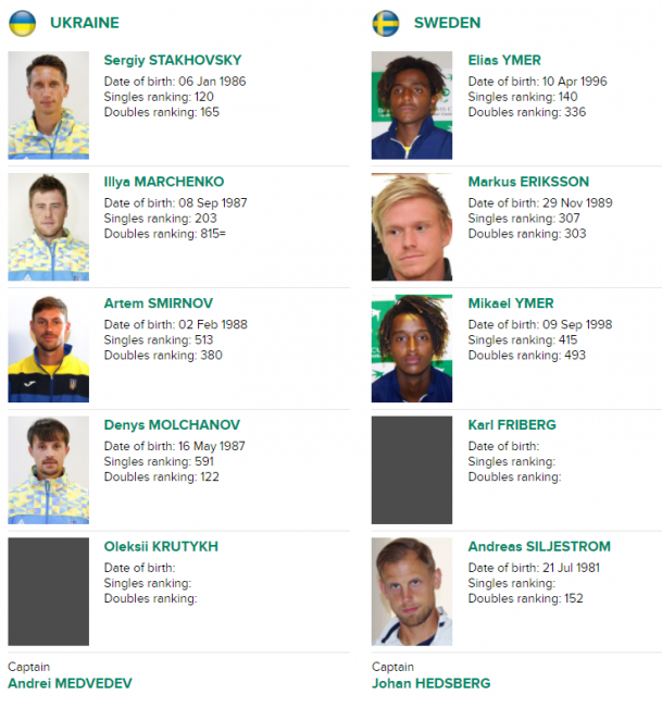 Сборная Швеции назвала состав на поединок против украинских теннисистов.