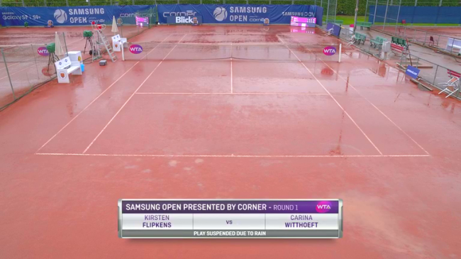 На данный момент три матча первого круга остановлены из-за дождя. а шесть так и не начались. Прогноз погоды в Лугано до конца дня неутешительный.