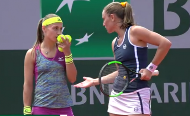 Отыгравшись с 0-2 в решающем сете, Бондаренко и Крунич спасли четыре брейкпоинта, чтобы повести в счете (3-2). У украинско-сербской пары были шансы взять четвертый гейм кряду, но соперницам удалось сравнять счет. С геймбола Катерина и Александра проигрывают подачу (3-4), после чего навязывает борьбу в гейме американской пары. Два брейкпоинта не использовали украинка и сербка, а затем упустили еще один свой гейм.
