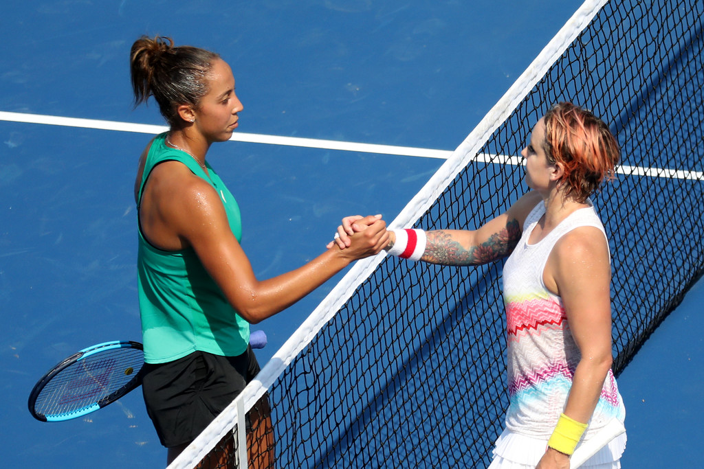 Мэдисон Кис провела первый матч после Уимблдона и отыгралась со счёта 1:3 во втором сете, а в решающем победила благодаря единственному брейку. Для выхода во второй круг ей понадобилось семь матчболов.