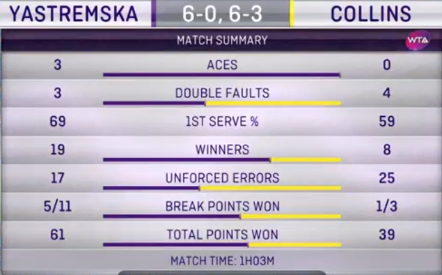 Даяна Ястремская (Украина, Q) — Даниэль Коллинс (США) 6-0, 6-3