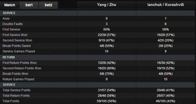 Ольга Янчук (Украина) / Александра Корашвили (Украина) — Жаоксиян Янг (Китай) / Лин Жу (Китай) 4-6 3-6