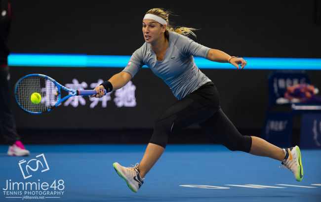 Анастасия Севастова одержала третью победу в сезоне над Донной Векич и во второй раз вышла в четвертьфинал турнира в Пекине. Впервые ей это удалось ещё в 2010 году, когда она впервые выступала на данном турнире и прошла квалификацию.