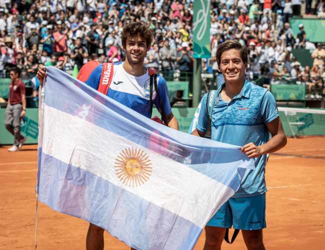 Золотую медаль в парном турнире выиграли хозяева кортов — Себастиан Баес и Факундо Диас Акоста. В финале аргентинцы, посеянные под первым номером, обыграли Адриана Андреева из Болгарии и японца Ринки Хидзикату: 6:4, 6:4.