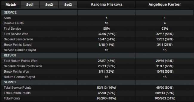 Анжелик Кербер в упорной борьбе одолела Каролину Плишкову.
