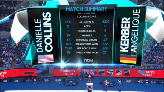 Коллинс одержала вторую в карьере победу над представительницей Топ-10: в прошлом году она обыграла Винус Уильямс (№8) на турнире WTA Premier Mandatory в Майами. Напомним, что в прошлом году Кербер дошла до полуфинала на Australian Open.