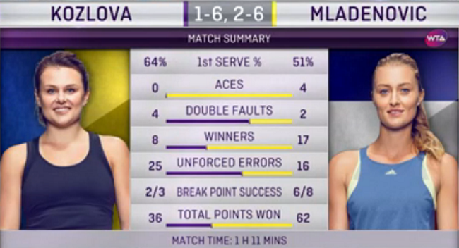 Катерина Козлова (Украина, Q) — Кристина Младенович (Франция) 1-6, 2-6