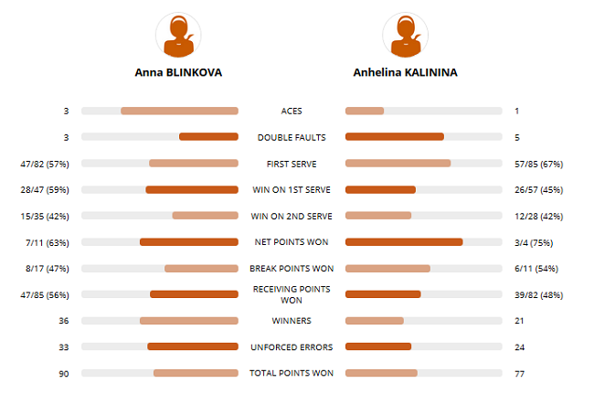 Ангелина Калинина (Украина) — Анна Блинкова (Россия, 9) 6-3, 3-6, 2-6