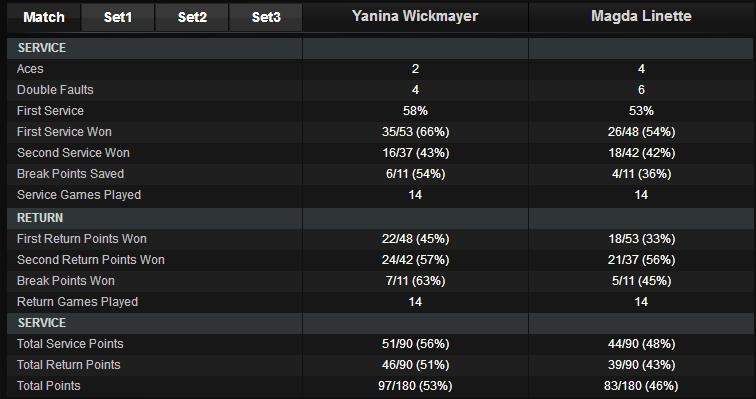 Янина Викмайер (Бельгия) — Магда Линетте (Польша) 4-6 6-3 6-3