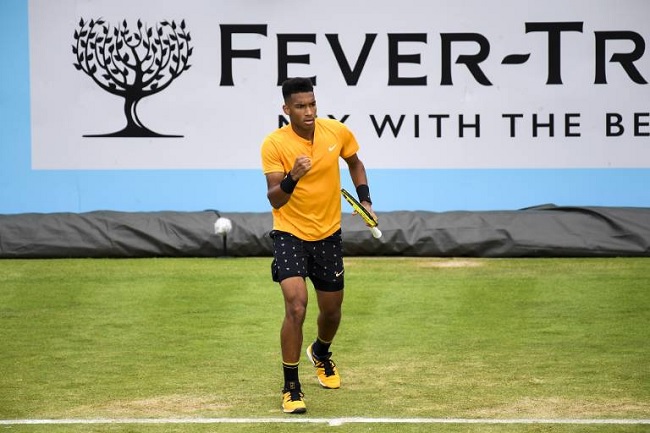 — 18-летний Оже-Альяссим за день выиграл два полных матча: против Григора Димитрова в первом круге и Ника Кириоса — во втором. За два первых сета теннисисты только раз дошли до брейкпоинта (Оже-Альяссим не воспользовался шансом на брейк во второй партии), а в 12-м гейме в решающей партии канадец реализовал матчбол (Кириос проиграл подачу с геймбола). Оже-Альяссим стал самым юным четвертьфиналистом на кортах «Квинс Клаб» с 2007 года, когда до этой стадии дошел Марин Чилич.
