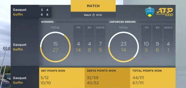 Матч продолжался 1 час и 17 минут. В первой партии Гоффен оформил один брейк, а во втором сете, уступая 0-2, выиграл 6 из следующих 8 геймов.