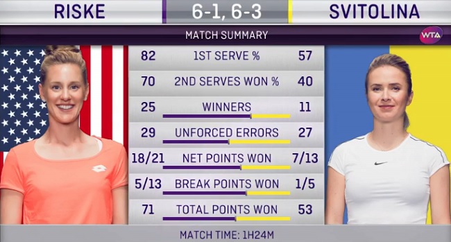 Элина Свитолина (Украина, 3) — Элисон Риск (США) 1-6, 3-6